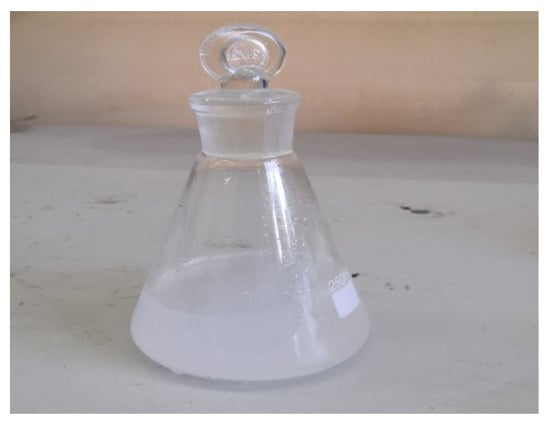 Deionized (DI) water and gasoline obtained from a local Iraqi gas station were utilized to produce the emulsified gasoline solution. As illustrated in Figure 1 and Figure 2, the emulsion was generated by adding gasoline oil droplets to DI water, followed by the homogenization of the mixture at 23 °C for 30 min. The range of gasoline concentrations in the oil–water emulsion was between 200 and 1000 mg/L, which is comparable to the oil concentrations found in actual produced effluent. The gasoline emulsion concentration was determined using a chemical oxygen demand (COD) device, namely a Lovibond ET 108 model manufactured in Dortmund, Germany.