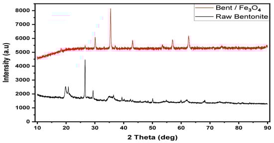 XRD analysis of raw bentonite and Fe3O4/Bent.