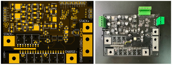 However, there is a drawback to using commercial testing devices for the testing of multiple-cell configurations or large-surface-area RFB cells, which result in high-voltage outputs or may require handling high currents. Commercial testing devices often fall short in accommodating these high voltage or current requirements, making it difficult to thoroughly evaluate the performance of such RFB systems. This gap in testing capability highlights the need for more specialized and adaptable charge/discharge testing devices that are tailored to the unique requirements of RFB research. Hence, the charge/discharge testing module that was designed and produced by the research team is a critical component in the evaluation of redox flow batteries and has been designed with two distinct boards: the power module board and the ESP32-IO connection board.