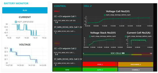 The Nodered dashboard used to control and monitor the charge/discharge module.