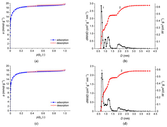 The specific volume of the adsorbent with micropores va (cm3 g−1) was determined as the sum of the specific volume of the adsorbent skeleton vsk, obtained with the helium pycnometry method, and the specific volume of micropores W0, determined within the framework of TVFM: