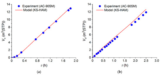 Here, is the mass of gas entered into the volume of the measuring system, (g); Vm is the total measuring system volume, (cm3); is the specific volume of adsorbent with micropores, (cm3 g−1); is the mass of regenerated adsorbent, (g); is the gas phase density, (kg m−3); is the molar mass (g mmol−1).