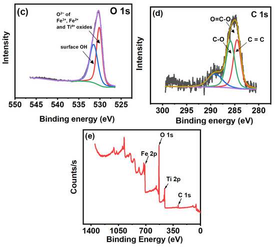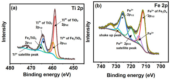 - Charitha, T.; Leshan, U.; Shanitha, M.; Ramanee, W.; Buddi, L.; Martin, B. Efficient Photodegradation Activity of α-Fe2O3/Fe2TiO5/TiO2 and Fe2TiO5/TiO2 Nanocomposites Synthesized from Natural Ilmenite. Results Mater. 2021, 12, 100219. [Google Scholar] [CrossRef]