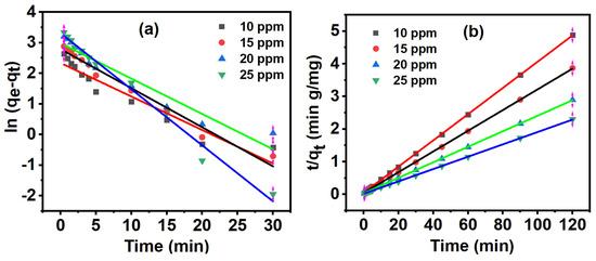 | Pseudo-First-Order Model | Pseudo-Second-Order Model | ||||||