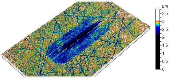 A Leica DCM 3D (Wetzlar, Germany) confocal microscope was used to determine the wear volume of the wear mark on the disc specimen. Confocal microscopes use a laser beam to scan the surfaces under examination, from which images are continuously captured by moving along three axes and then combined to create a three-dimensional image (see Figure 2). The inserted disc specimen must be leveled before measuring with a confocal microscope. A 20× magnification objective was used for the measurement. In the evaluation software of the microscope, it is possible to calculate the volume of the worn material from the microscopic image using the least squares method.