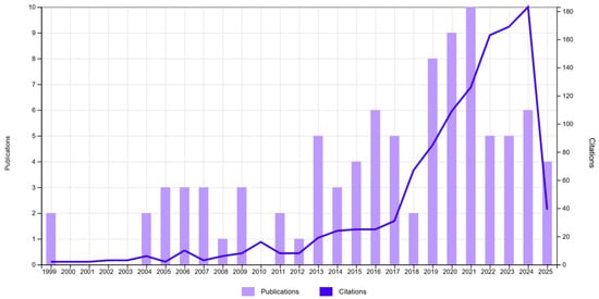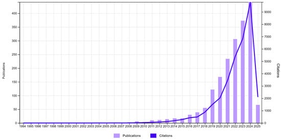 Figure 2. The results indicate a strong increase in research output since 2016, with exponential growth in publications and citations peaking in 2024.