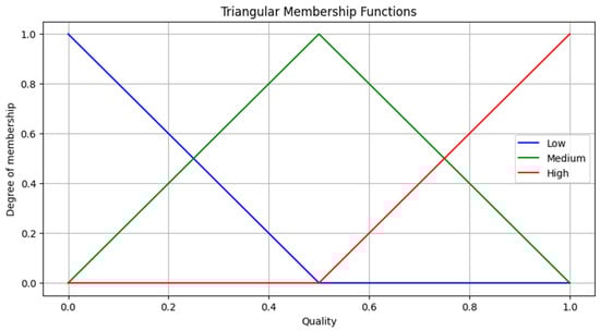 Each feature is categorized into low, medium, and high using triangular membership functions, allowing smooth transitions between levels.