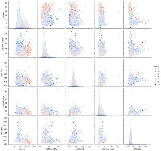 Based on XGBoost feature importance analysis, five physicochemical properties are selected: alcohol, free sulfur dioxide, volatile acidity, fixed acidity, and residual sugar; see