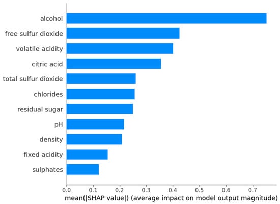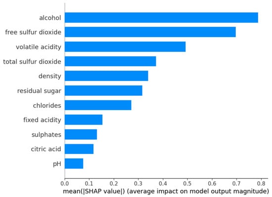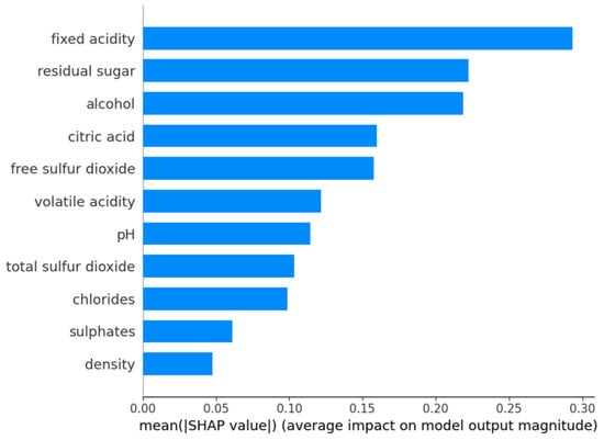 Figure 16), the most influential characteristic is fixed acidity, closely followed by residual sugar and alcohol content. This suggests that well-balanced acidity and sugar–alcohol interaction are very important characteristics in determining whether a wine falls into the medium quality category. Other relevant factors are citric acid and free sulphur dioxide, which contribute to the stability and sensory characteristics of the wine. Volatile acidity and pH also play a role, indicating that slight variations in acidity can significantly influence the classification. Characteristics such as total sulphur dioxide, chlorides, sulphates, and density show less overall influence on the medium quality classification, suggesting that they play a secondary role in this category.