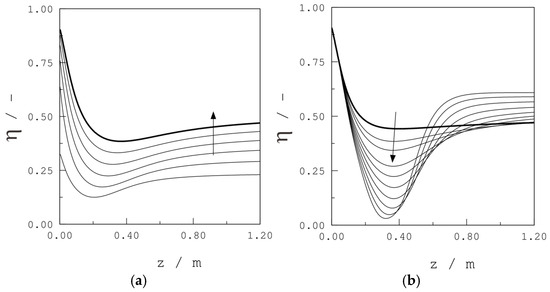 Corresponding to base case conditions (see Table 1), it was concluded from the obtained values in Equations (6) and (7) (see Table 2) that axial mixing is not significantly present, and hence no additional second-order terms, accounting for axial diffusion, were to be added to Equations (1) and (2).