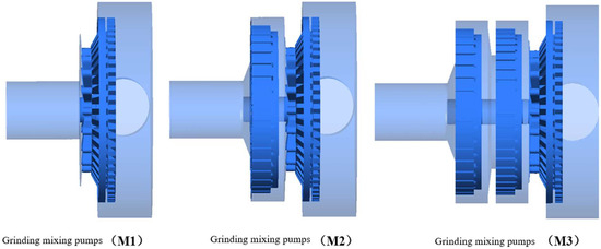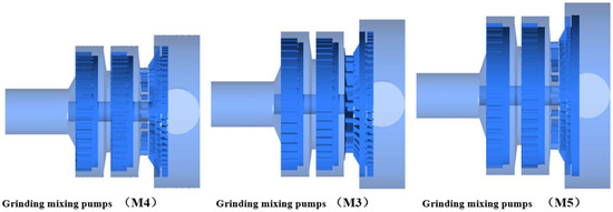 Figure 7. Structural model of grinding mixing pumps (M1, M2, M3).