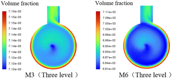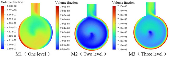 Figure 13. Pump (M1, M2, M3) cross-sectional volume fraction distribution map at all levels.