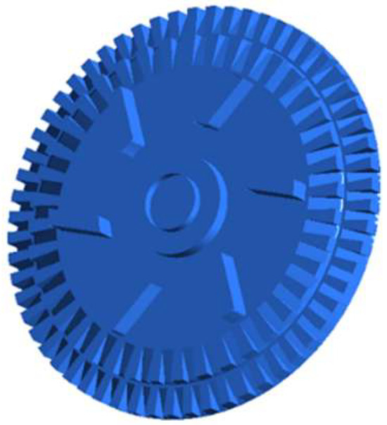 Driven by the rotor, the fluid gradually moves from the center to the edge. When the polymer passes through the gap between the stator and the rotor, it is squeezed, stretched, and ground under the action of dynamic pressure and shear force. Figure 4 shows the shear force distribution of the rotor in the grinding-type hybrid pump (M3). According to the distribution contour plot, high shear force areas are mainly concentrated at the tooth ends on the outer edge of the rotor in each transmission region.