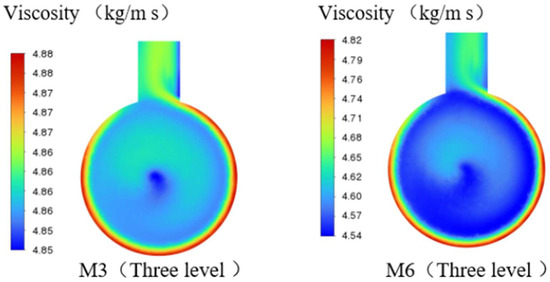 Figure 11. Pump (M1, M2, M3) cross-sectional viscosity distribution diagram.
