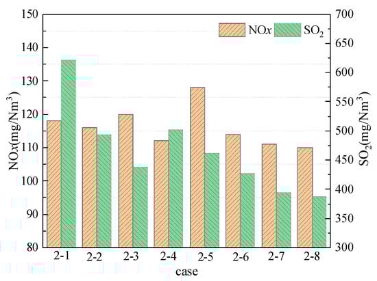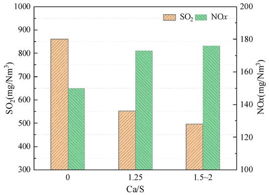 3.1.2. NOx and SO2 Emissions at Different Amounts of Sorbent Addition