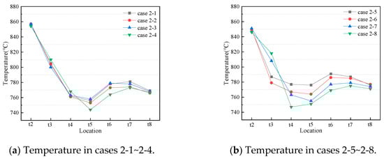 3.2.1. Temperature Distribution at Different Post-Combustion Air Arrangements