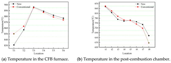 3.3.1. Temperature Distribution in the CFB Furnace and Post-Combustion Chamber