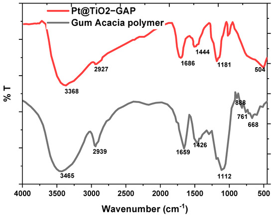 FT-IR spectra of pure gum acacia and Pt@TiO2–GAP.