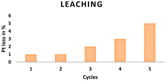 Leaching of Pt@TiO2–GAP as nanocatalyst applied for catalytic reduction of 4-methoxy nitrobenzene over five consecutive cycles.