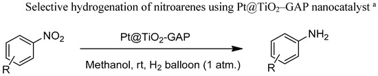 Hydrogenation of nitroarene by Pt@TiO2–GAP nanocatalyst a.