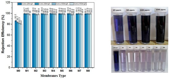 Rejection of different concentrations of NBB dye by nanocomposite membranes.