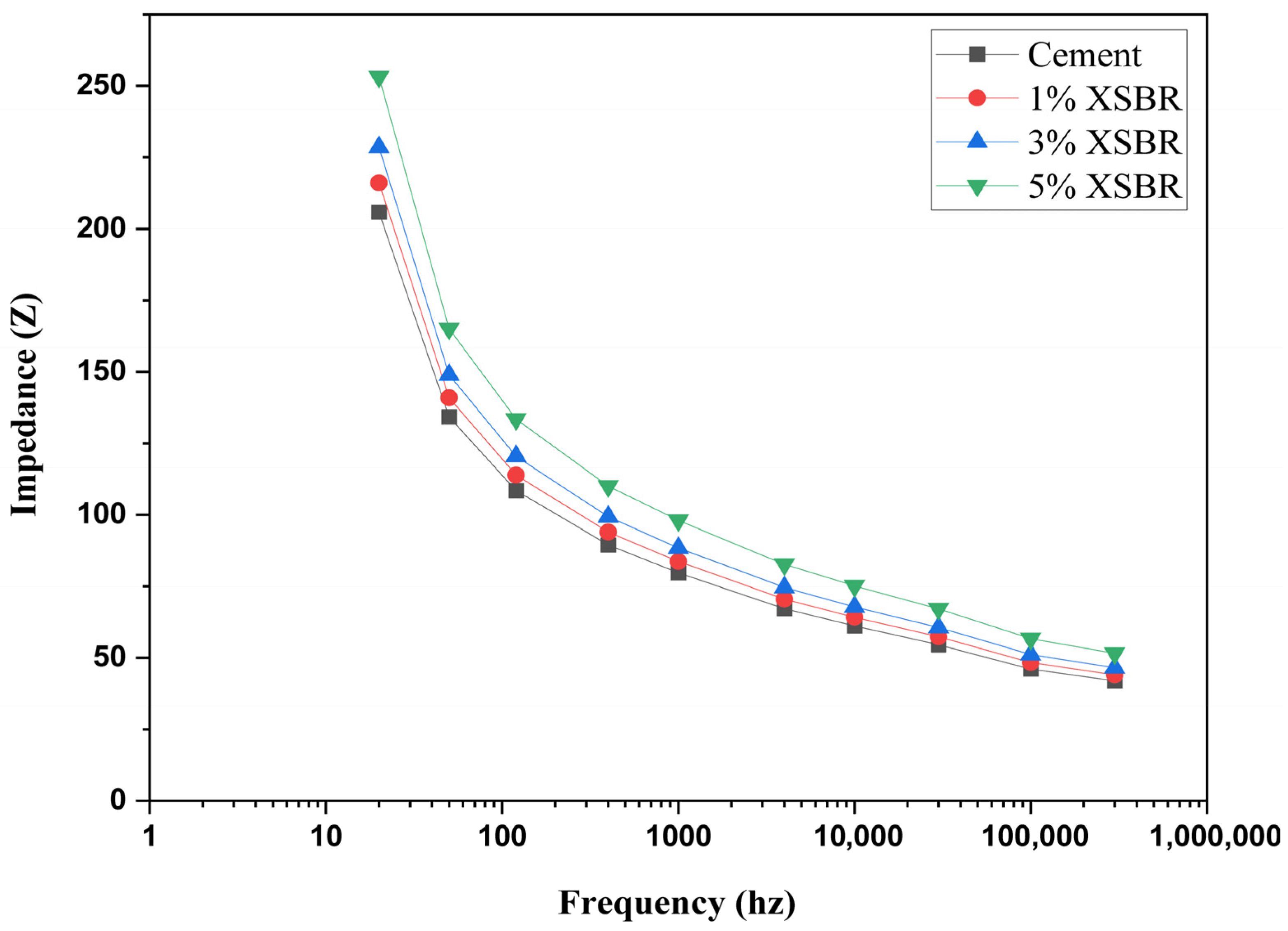 3.1. Electrical Impedance of Polymer-Treated Cement