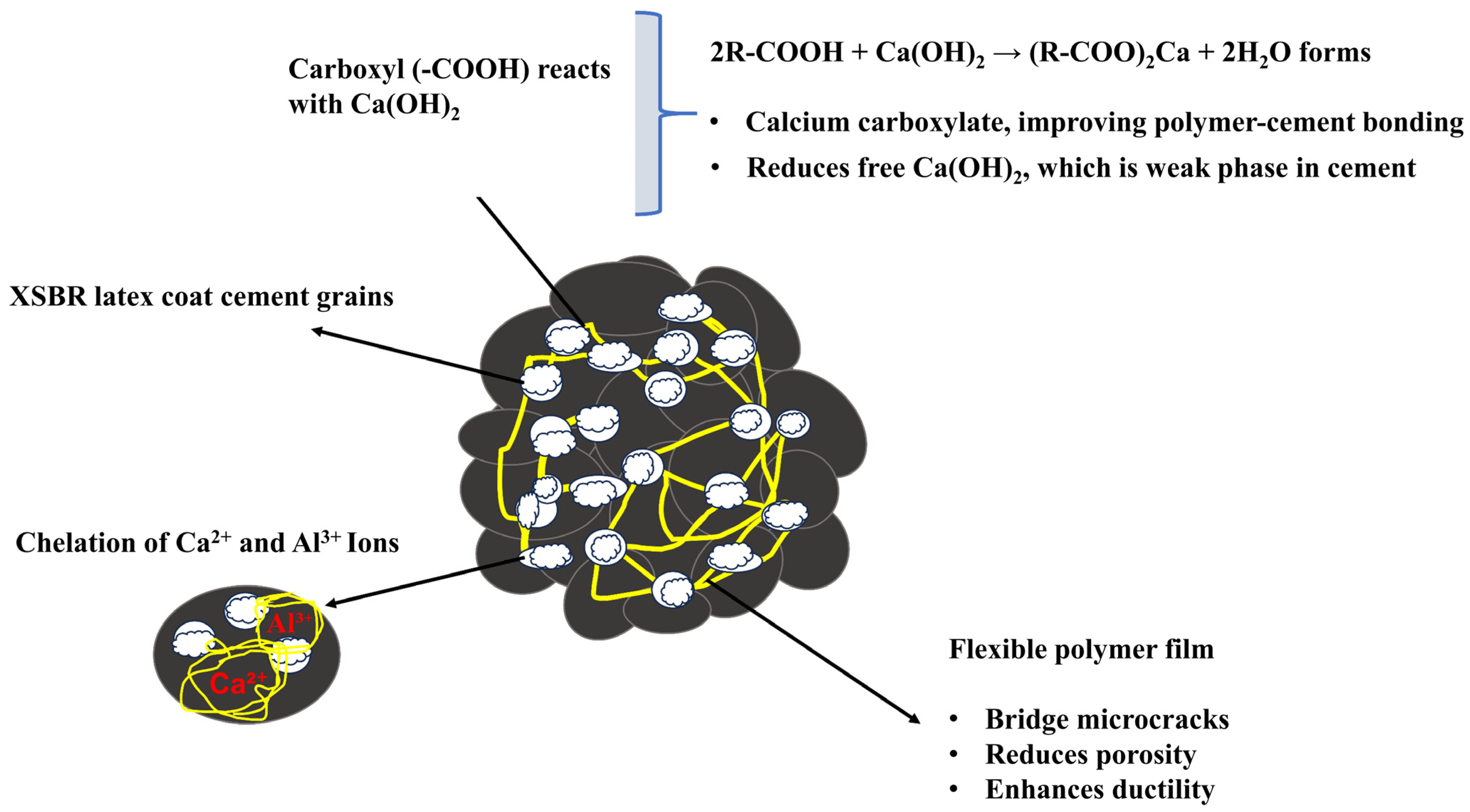 - Baueregger, S.; Perello, M.; Plank, J. Influence of carboxylated styrene–butadiene latex copolymer on Portland cement hydration. Cem. Concr. Compos. 2015, 63, 42–50. [Google Scholar] [CrossRef]
