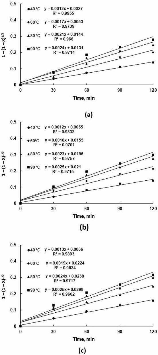 3.4. Leaching Kinetics and Shrinking Core Model Analysis