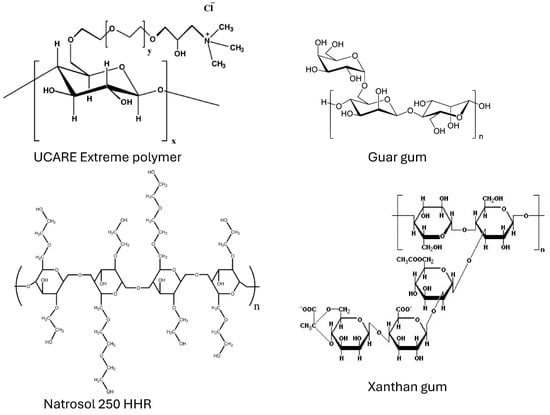 The approximate molecular weights of the polymers used in this study are as follows: UCARE extreme polymer: ; Guar gum: ; Nonionic hydroxyethyl cellulose: ; Xanthan gum: .