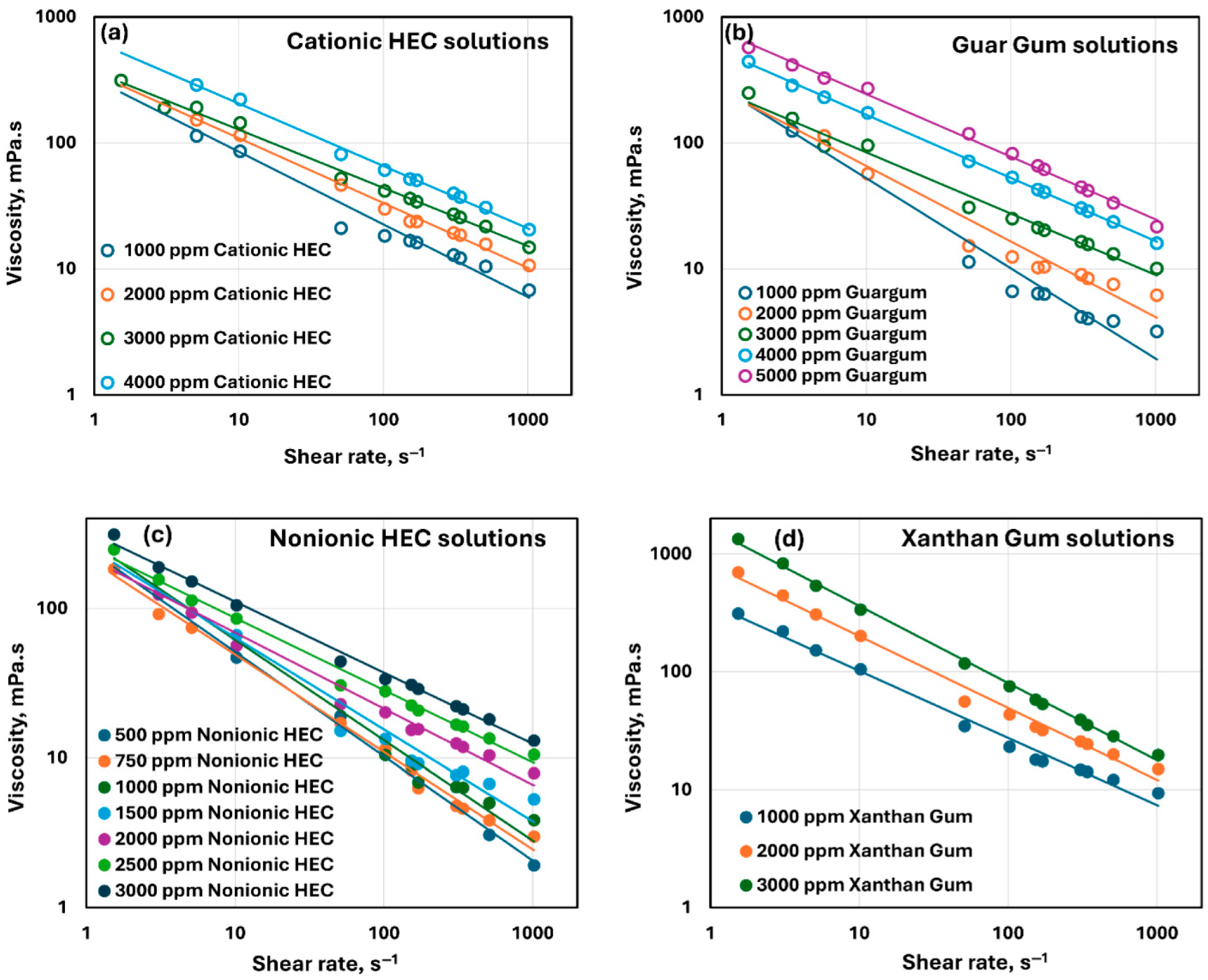 - Lu, Q.; Pal, R. Steady shear rheology and surface activity of polymer-surfactant mixtures. Polymers 2025, 17, 364. [Google Scholar] [CrossRef]