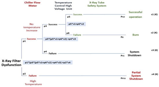 Event analysis diagram for a potential X-ray filter dysfunction (clogged filter) in a SAXS. The asterisks indicate multiplication of the values.