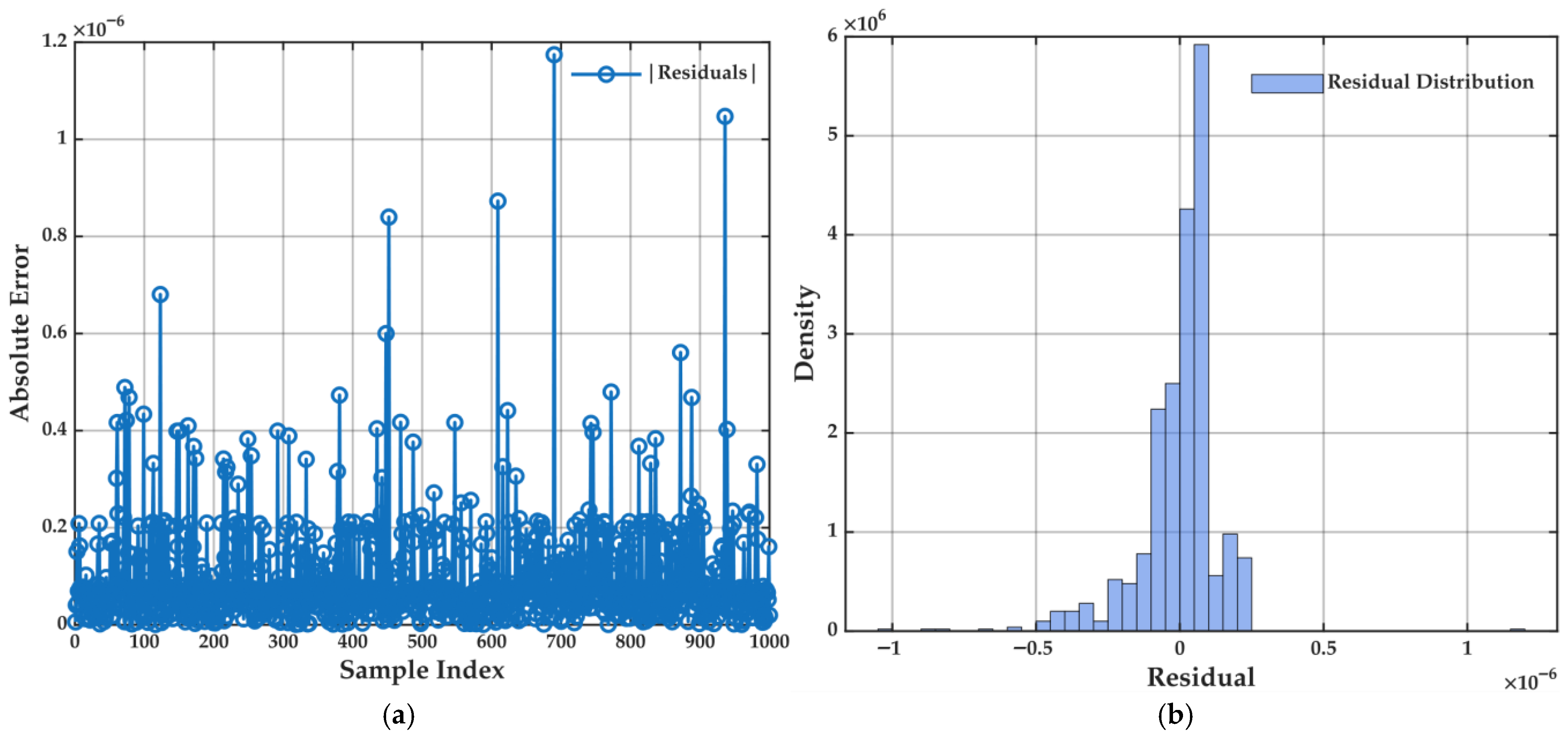 - Absolute Error per Sample: Compute and plot the absolute error for each sample index. This plot helps to identify isolated outliers or regions where the model’s performance deteriorates, thereby guiding further data investigation or model refinement.