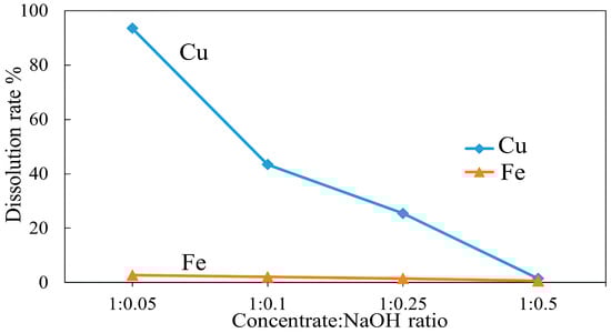 3.3.4. Effect of Concentrate:NaOH Mass Ratio