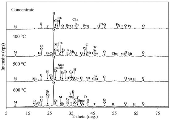 - Ma, H.F.; Liao, Y.L.; Wu, M.; Jia, X.B.; Yang, S.Y. Phase transformation mechanism of oxidation roasting of low-grade polymetallic chalcopyrite ore in the presence of CaO. J. Min. Metall. Sect. B-Metall. 2023, 59, 375–382. [Google Scholar] [CrossRef]