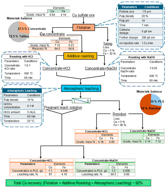 3.5. A Flowchart for Copper Recovery from Copper Sulfide Ore Using Collectorless Flotation and Additive Roasting