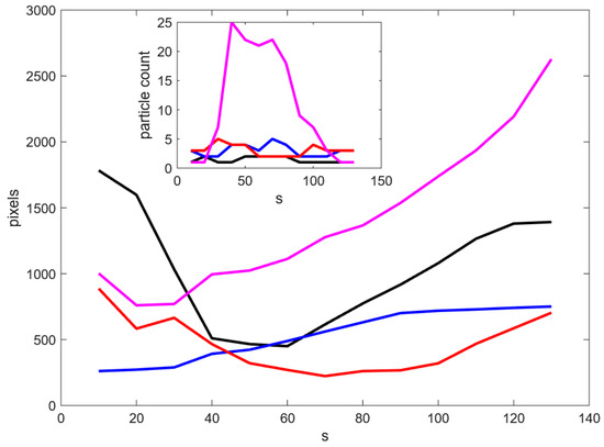 The flow of energy through the bed materials was investigated using the emission of photons from the surface of the bed materials measured by the A6750 thermal camera. In FLIR Research Studio, the colour palette of the thermal images was set to have a cut off at 60 °C, where the colour changed from white to orange. Subsequently, screenshots were taken every 10 s (300 frames), up to 120 s, as this showed the fastest section of heating. The image analysis program, ImageJ, was then used to threshold the images using the white–orange cutoff. The process of thresholding the images allowed quantitative evaluation of the total thresholded area and the number of isolated thresholded areas (hotspots).