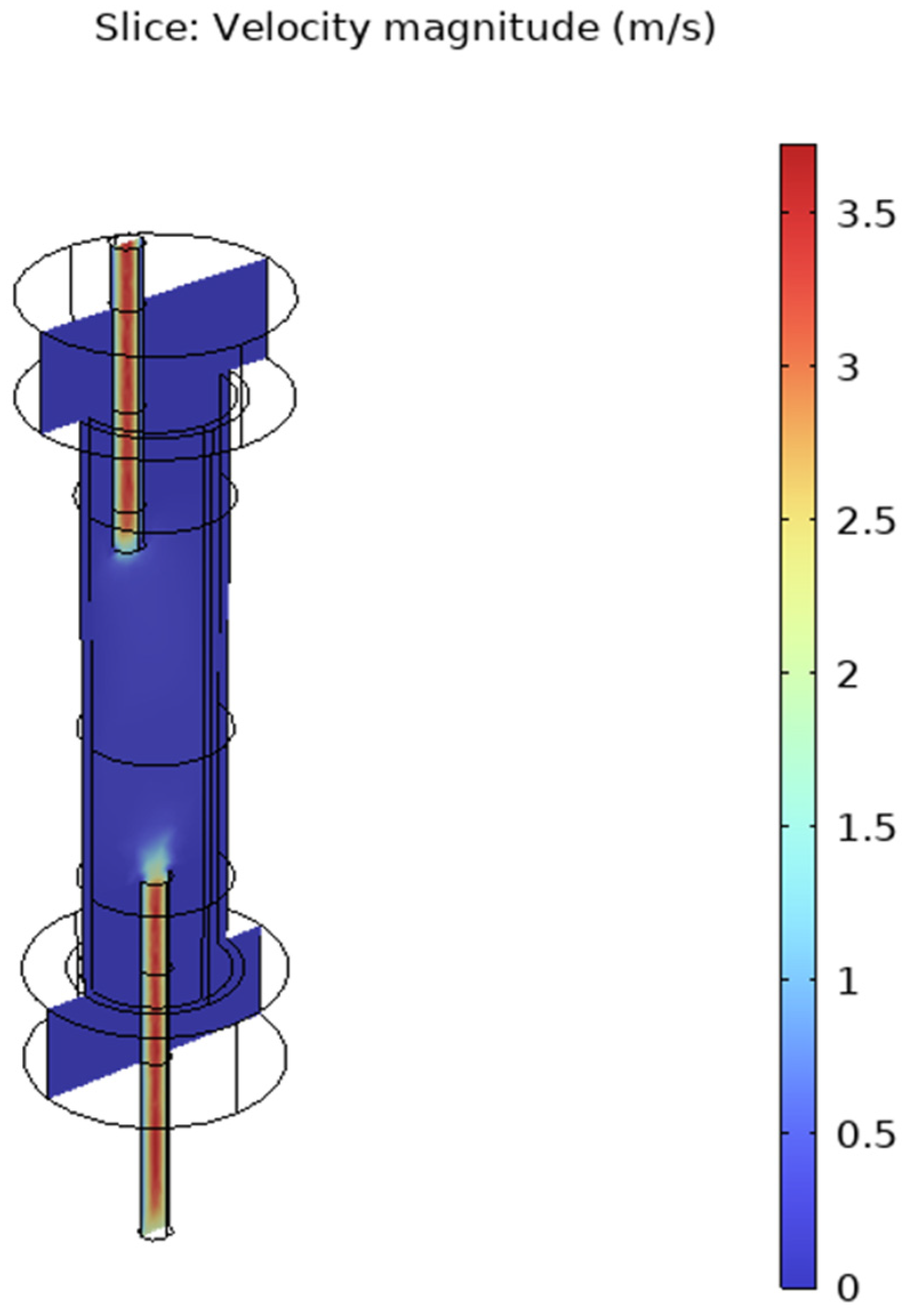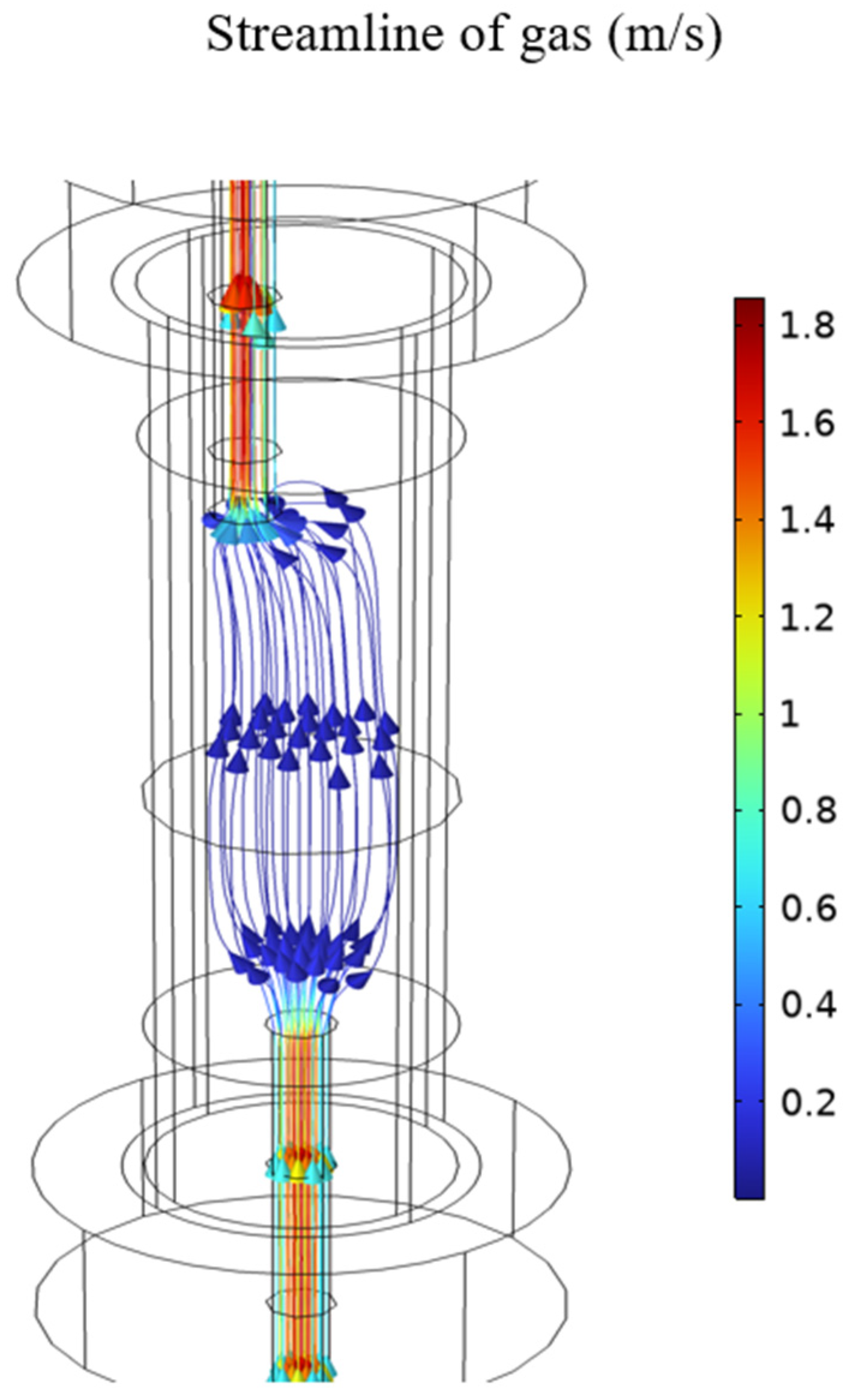 Figure 7, the gas flow is evenly distributed throughout the inner cavity of the reactor.
