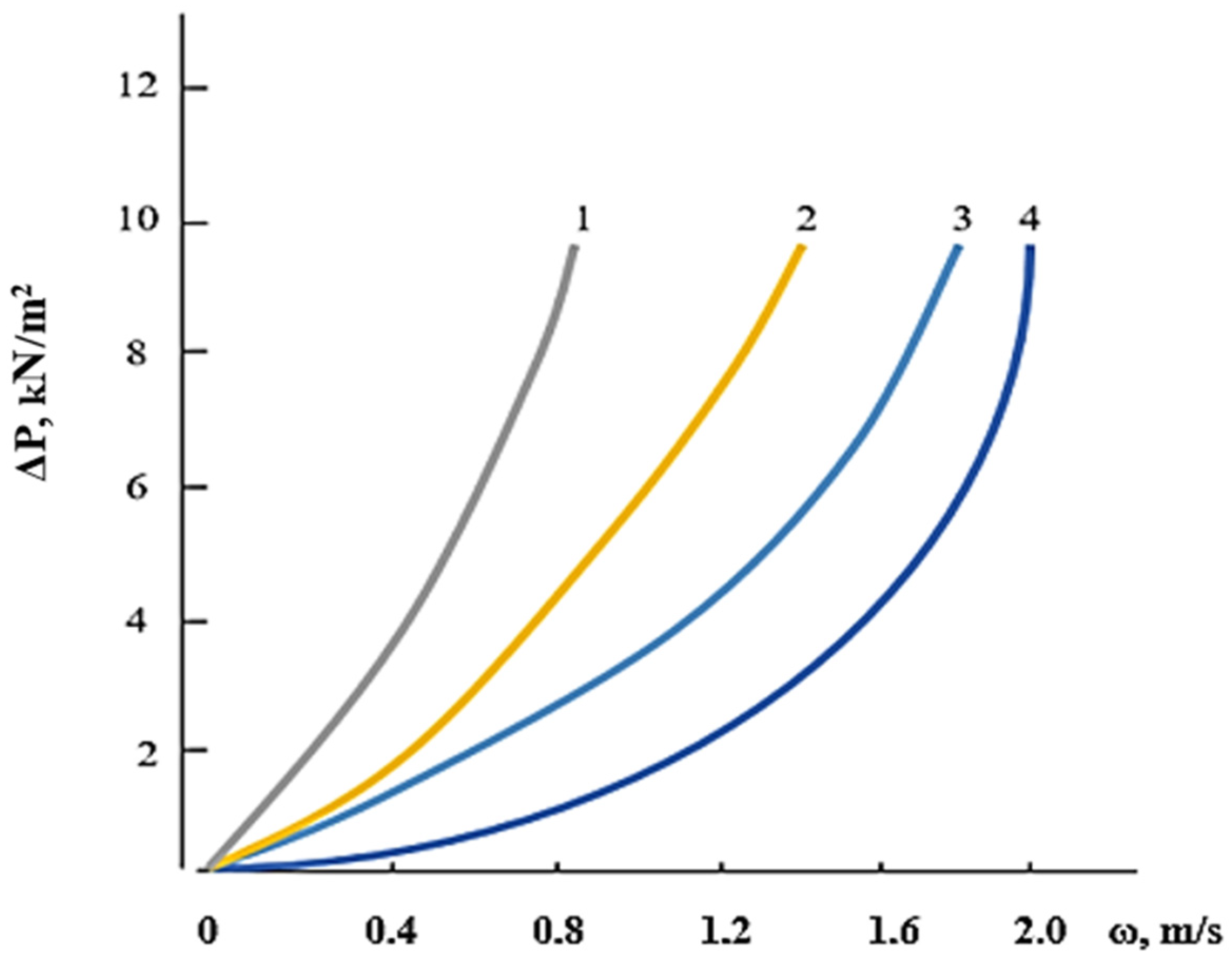 Figure 15 shows a comparative graph of the dependence of the pressure drop on the gas filtration rate.