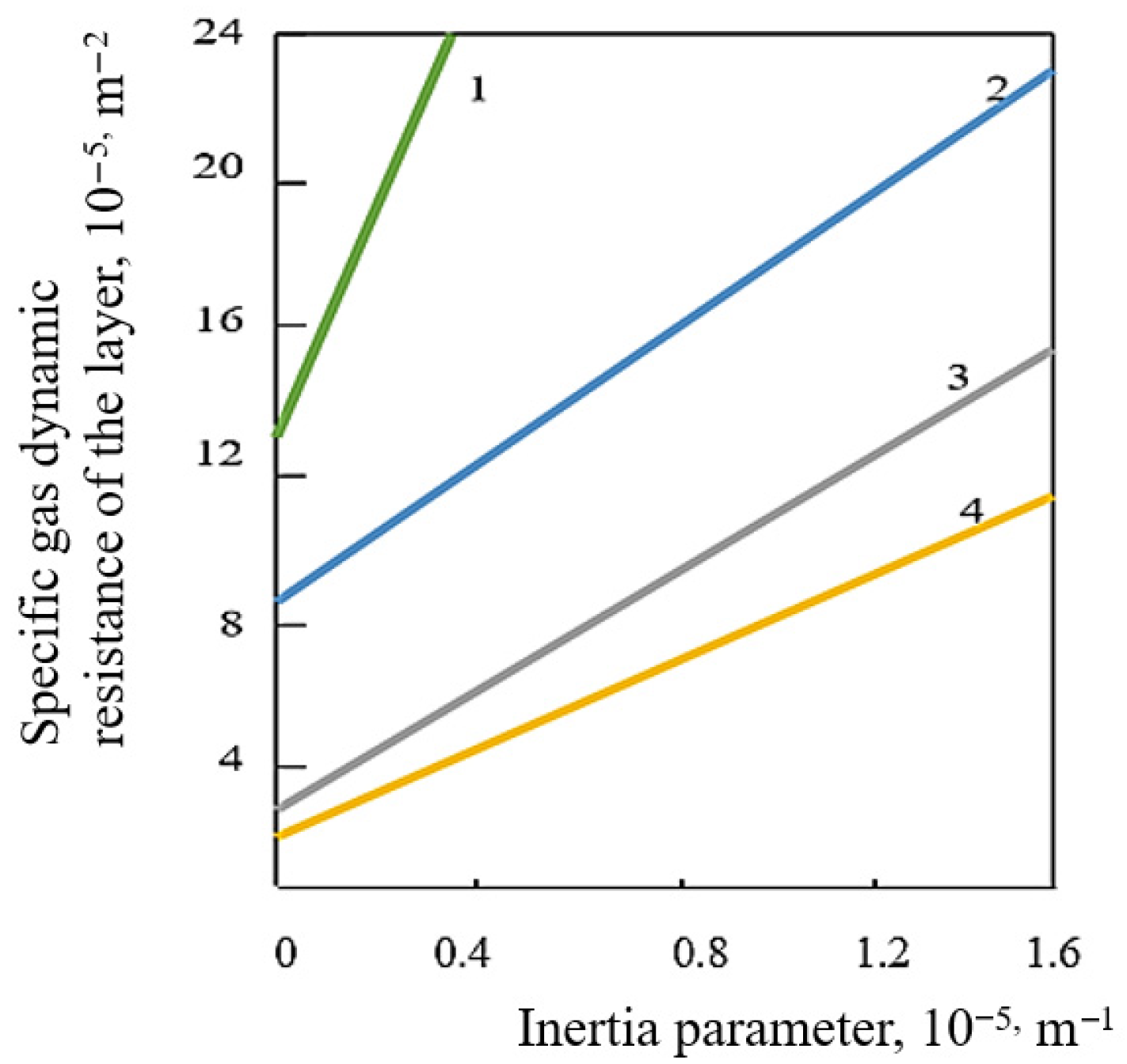 The numerical values of these coefficients for a given layer were determined provided that at least two gas flow velocities and their corresponding pressure losses are known. The analytical coefficients are found using the following formulas:
