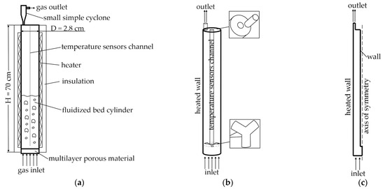 - Gunn, D.J. Transfer of heat or mass to particles in fixed and fluidized beds. Int. J. Heat Mass Transf. 1978, 21, 467–476. [Google Scholar] [CrossRef]