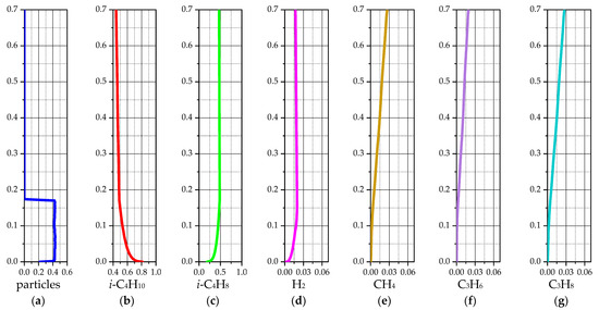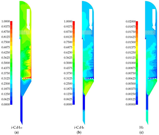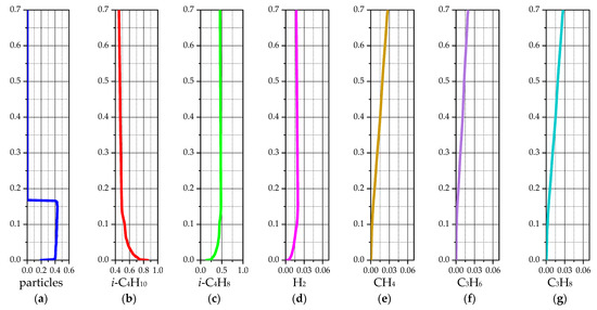 Table 1 demonstrates that numerous species are formed in the gas phase during the process. Simulating all of these species would require accounting for numerous chemical reactions. Therefore, this study focuses only on reactions producing species with mass fractions exceeding 2% in the gas phase. Three key reactions were selected: dehydrogenation of isobutane to isobutylene, thermal cracking of isobutane, and hydrogenation of propylene to propane.