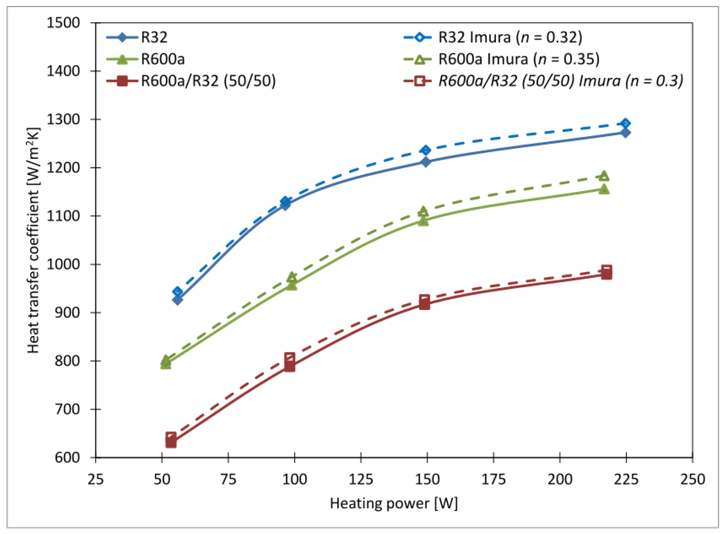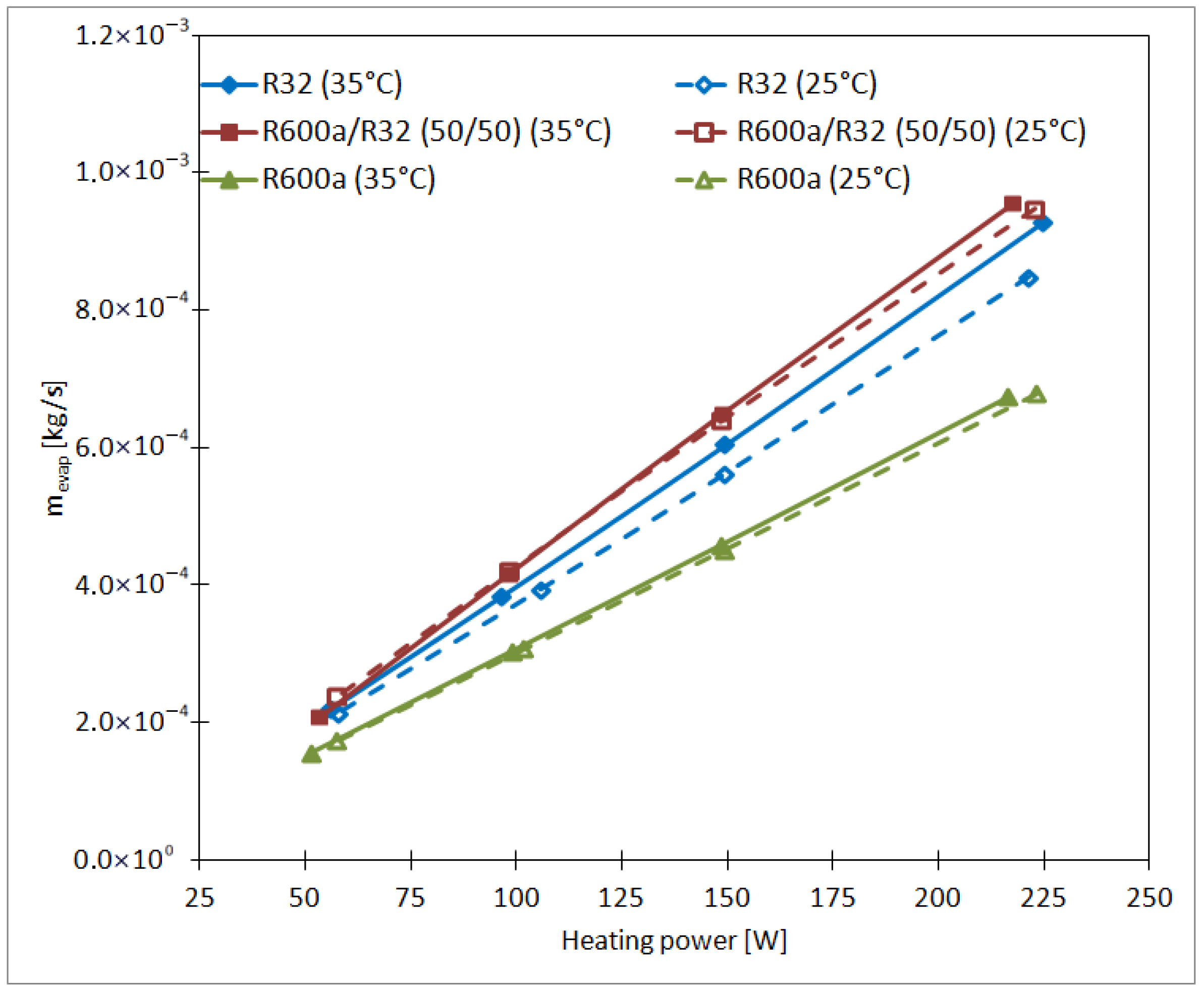 - Gil, B.; Fijałkowska, B. Experimental study of nucleate boiling of flammable, environmentally friendly refrigerants. Energies 2019, 13, 160. [Google Scholar] [CrossRef]