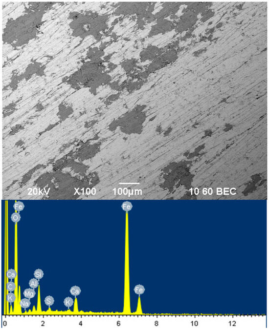 The container containing an inhibitor solution was connected by hoses to a capsule in which a steel pipe sample was placed. Using a circulation pump, the inhibitor solution was pumped through the capsule for a predetermined time. After the set time, a pipe sample was removed from the capsule and sent for energy-dispersive analysis using a scanning electron microscope JSM-6490LV (JEOL Ltd., Tokyo, Japan) with an INCAPentaFET-x3 energy dispersive X-ray microanalysis system (Oxford Instruments PLC, Abingdon, UK).