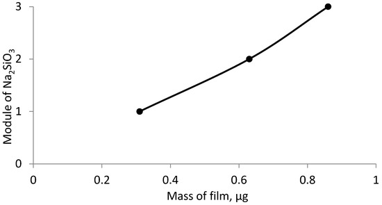 Dependence of the deposited film mass on the steel sample, inhibited by sodium silicate of different modulus over a period of 24 h.