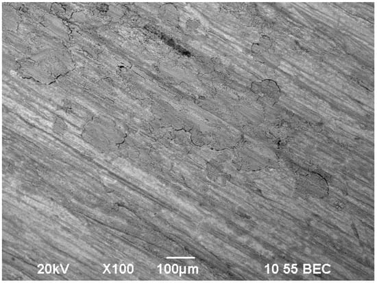 Figure 4 shows the surface of a film inhibited by a mixture of sodium silicate m = 3 with sodium tripolyphosphate for 24 h.