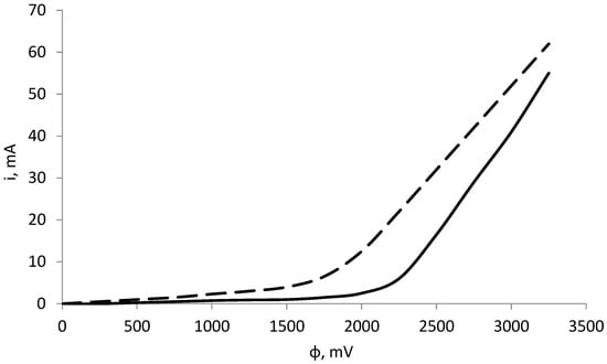 The protective characteristics of the obtained film are estimated by the polarization curves shown in Figure 12. The cathode current values for the same potentials for the sample inhibited for 144 h are lower than for the sample inhibited for 24 h. This means that the surface inhibited for a longer period interacts more passively with metal ions in water, leading us to conclude that the protective properties of the coating increase with increasing inhibition time.