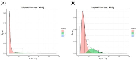 - Evin, G.; Merleau, J.; Perreault, L. Two-component Mixtures of Normal, Gamma, and Gumbel Distributions for Hydrological Applications. Water Resour. Res. 2011, 47, 2010WR010266. [Google Scholar] [CrossRef]