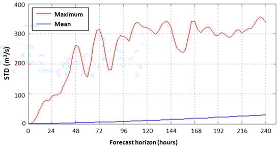 Maximum and mean values of the standard deviations obtained for each forecast horizon.