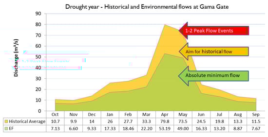 A consensus was thus reached for a recommended environmental flow for the dry and wet season conditions in drought and maintenance years and for floods. Each expert suggested flow recommendations by discipline and was asked to defend the reasoning behind those recommendations. Each expert also estimated a level of certainty that the recommended environmental flow would satisfy the needs for species or important ecosystem processes, like sediment transport. The discussion for each site was concluded only once a consensus for flow recommendations had been met, a facilitated process that typically lasted about two–three hours. The hydrologist then took the recommendations for the dry, wet, drought, maintenance, and flood conditions and extrapolated them across the year, following the BBM []. The resulting information constituted a prescribed environmental flow regime for the estuary taken at Gama Gate.
