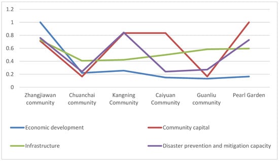 Economic development refers to a series of economic developments related to residents in the community such as economic income, which is used to measure the development of the community. In this paper, the economic development level includes three indicators: income level, health insurance coverage and financial investment in disaster prevention [40]. Better economic development affects the community’s basic public infrastructure and improves the community’s ability to withstand flooding.
